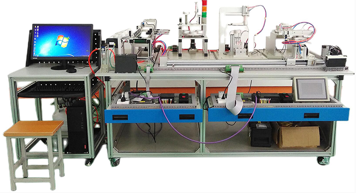 機電一體化綜合實訓考核裝置是光機電氣一體化控制實訓系統(tǒng)的核心組成部分。該裝置主要由鋁合金導軌式實訓臺、典型的機電一體化設備機械部件、PLC模塊、變頻器模塊、按鈕模塊、電源模塊、模擬生產設備實訓模塊、接線端子排和各種傳感器、計算機等關鍵部件組成。