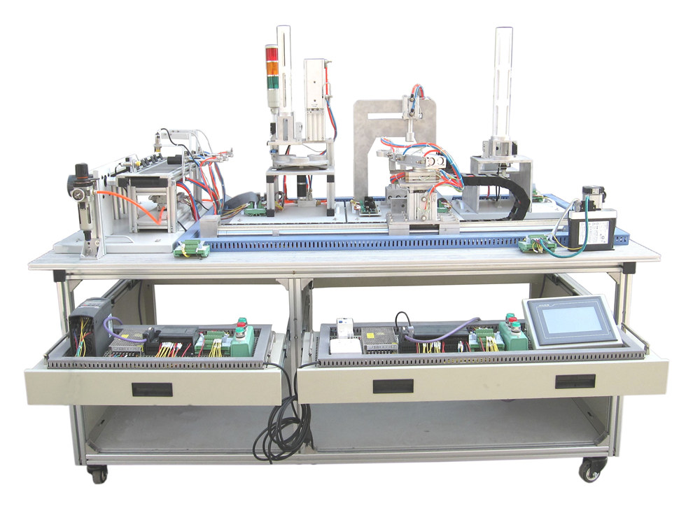 光機(jī)電氣一體化控制實(shí)訓(xùn)系統(tǒng)由鋁合金導(dǎo)軌式實(shí)訓(xùn)臺(tái)、典型的機(jī)電一體化設(shè)備的機(jī)械部件、PLC模塊、變頻器模塊、按鈕模塊、電源模塊、模擬生產(chǎn)設(shè)備實(shí)訓(xùn)模塊、接線端子排和各種傳感器、計(jì)算機(jī)等組成。整體結(jié)構(gòu)采用開(kāi)放式和拆裝式,實(shí)訓(xùn)裝置用于機(jī)械部件組裝,可根據(jù)現(xiàn)有的機(jī)械部件組裝生產(chǎn)設(shè)備,也可添加機(jī)械部件組裝其他生產(chǎn)設(shè)備,使整個(gè)裝置能夠靈活的按教學(xué)或競(jìng)賽要求組裝具有生產(chǎn)功能的機(jī)電一體化設(shè)備。模塊采用標(biāo)準(zhǔn)結(jié)構(gòu)和抽屜式模塊放置架,互換性強(qiáng);按具有生產(chǎn)性功能和整合學(xué)習(xí)功能的原則確定模塊內(nèi)容,使教學(xué)或競(jìng)賽時(shí)可方便的選擇需要的模塊。設(shè)備需完全符合電工電子全國(guó)職業(yè)技能大賽所要求,同時(shí)還要求具有可拓展功能,可以組成更加大型的生產(chǎn)模擬系統(tǒng),以配合各院校不同層次,不同專(zhuān)業(yè)的教學(xué)及培訓(xùn)要求。
