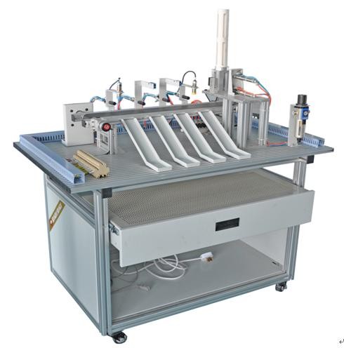 本實訓(xùn)裝置是針對機電一體化教學(xué)的要求而研發(fā)的,它涵蓋了PLC、氣動控制、電機傳動、電磁鐵控制、位置控制、傳感器檢測等教學(xué)內(nèi)容,是實際工業(yè)現(xiàn)場生產(chǎn)設(shè)備的微縮裝置?;诙喾N傳感器的檢測及旋轉(zhuǎn)編碼器的精確定位,實現(xiàn)對不同材質(zhì)、不同顏色物體的分揀。裝置采用全開放式布局且具有設(shè)故排故單元,可充分鍛煉操作者系統(tǒng)接線、機械調(diào)試安裝、軟件編程、獨立構(gòu)建控制系統(tǒng)、反饋整定、故障檢測及檢修的能力。適合于自動化、電氣自動化、電氣工程等專業(yè)的《運動控制》、《氣壓系統(tǒng)》、《機電一體化技術(shù)》、《檢測與轉(zhuǎn)換技術(shù)》、《可編程控制技術(shù)》等課程開設(shè)實訓(xùn)課。