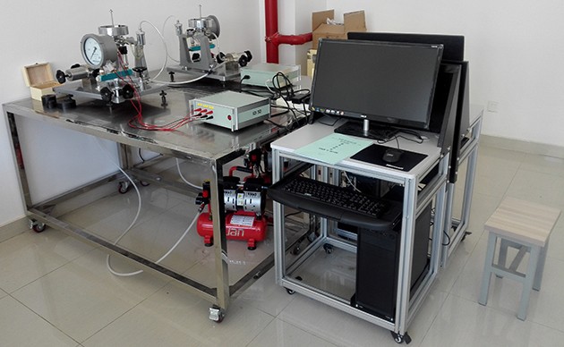 壓力測(cè)量設(shè)備在工程上應(yīng)用廣泛,種類繁多。對(duì)壓力測(cè)量設(shè)備的關(guān)鍵部件壓力傳感器的標(biāo)定是保證設(shè)備精度的最重要環(huán)節(jié)。因此,壓力傳感器標(biāo)定實(shí)驗(yàn)是《熱工檢測(cè)技術(shù)》課程教學(xué)的重要組成部分,通過該實(shí)驗(yàn)?zāi)芗由顚W(xué)生對(duì)自動(dòng)檢測(cè)技術(shù)理論的理解,使學(xué)生更好的學(xué)好這門工程基礎(chǔ)課,了解傳感器動(dòng)態(tài)響應(yīng)特性的對(duì)動(dòng)壓測(cè)量的重要性和測(cè)量及處理方法。本實(shí)驗(yàn)臺(tái),用活塞式靜壓力校驗(yàn)設(shè)備同時(shí)校驗(yàn)安裝在同一壓力腔室的工業(yè)用遠(yuǎn)傳壓力表、壓力傳感器的靜態(tài)和動(dòng)態(tài)壓力特性;用壓力波發(fā)生裝置產(chǎn)生交變壓力信號(hào),用以上幾種壓力傳感器同時(shí)測(cè)量這一壓力信號(hào),測(cè)量各壓力傳感器的動(dòng)態(tài)特性。各壓力傳感器輸出由計(jì)算機(jī)采集和分析,以加深學(xué)生對(duì)壓力檢測(cè)技術(shù)的理解,提高運(yùn)用微機(jī)對(duì)各壓力傳感器進(jìn)行靜態(tài)和動(dòng)態(tài)性能分析的能力。本實(shí)驗(yàn)臺(tái)技術(shù)先進(jìn),適用于生產(chǎn)廠家的產(chǎn)品質(zhì)量檢驗(yàn)和教學(xué)科研的需要。