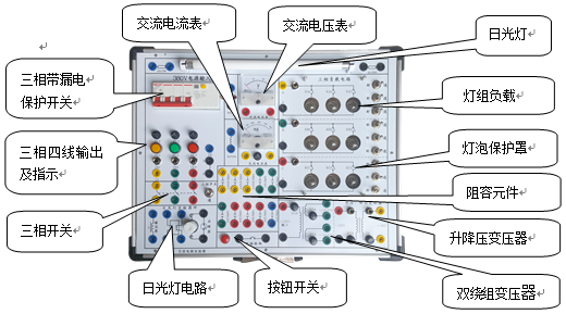 維護(hù)與保護(hù):日光燈管和燈腳安裝在電路板的正面,方便維修維護(hù)。三相燈組上裝有有機(jī)玻璃保護(hù)罩,既防止燈泡損壞,又保護(hù)實(shí)驗(yàn)導(dǎo)線不被燙壞,還保護(hù)了人生安全。