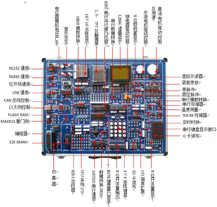 本實(shí)驗(yàn)箱將MCGS工業(yè)組態(tài)軟件與單片機(jī)控制技術(shù)相結(jié)合,為學(xué)生呈現(xiàn)一個(gè)直觀、形象的自動(dòng)控制工業(yè)場(chǎng)景。系統(tǒng)不僅涵蓋了51/52系列單片機(jī)的基礎(chǔ)應(yīng)用技術(shù),還擴(kuò)展到了各類控制技術(shù)、數(shù)據(jù)通信技術(shù)以及系統(tǒng)設(shè)計(jì)技術(shù)等。通過(guò)眾多外圍器件和設(shè)備接口的提供,學(xué)生可以迅速掌握單片機(jī)原理及其接口技術(shù),并深入了解當(dāng)今單片機(jī)領(lǐng)域流行的外設(shè)器件應(yīng)用。同時(shí),學(xué)習(xí)MCGS工業(yè)組態(tài)軟件的編程和控制技術(shù),培養(yǎng)學(xué)生成為適應(yīng)社會(huì)創(chuàng)新需求的應(yīng)用型人才。