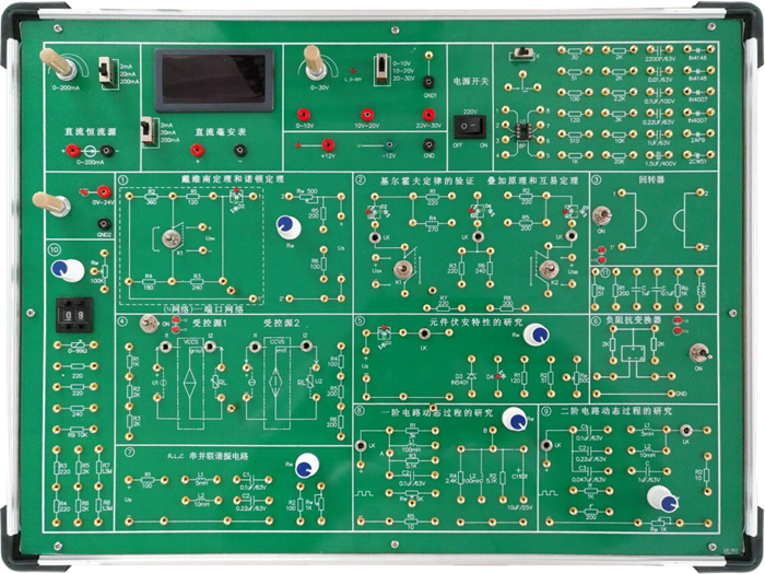 電路原理實(shí)驗(yàn)箱由鋁木合金箱體、線性電源、常用信號(hào)源、測(cè)量?jī)x表、實(shí)驗(yàn)電路模塊等組成。其中實(shí)驗(yàn)電路區(qū)大部分元器件在反面,正面標(biāo)有電路原理圖,方便學(xué)生讀圖,以提高實(shí)驗(yàn)效率。本實(shí)驗(yàn)箱適用于本專科院校、高職高專所有電類和非電類專業(yè)《電工學(xué)》、《電路原路》等課程的實(shí)驗(yàn)教學(xué)。