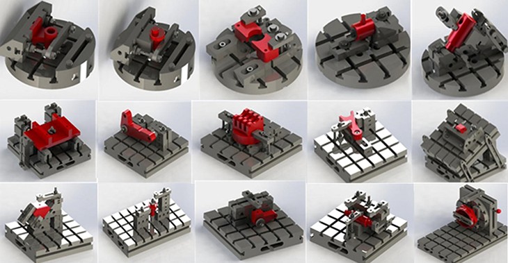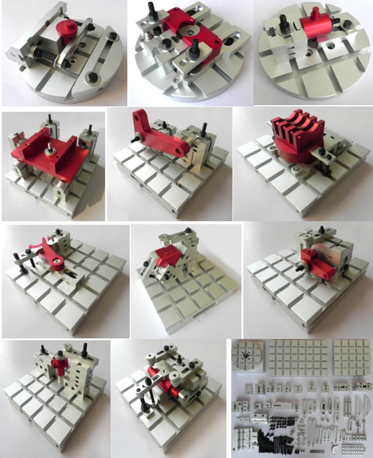 2、能搭建15種槽系組合夾具方案(包含以下15種夾具上的樣件);