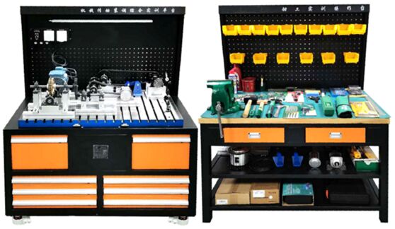本實(shí)訓(xùn)平臺(tái)是根據(jù)機(jī)械傳動(dòng)中典型傳動(dòng)系統(tǒng)而研制,由實(shí)訓(xùn)工作臺(tái)、電控箱、零件存放盒、典型機(jī)械傳動(dòng)組件、配套工量具和相關(guān)檢測(cè)設(shè)備等組成,其中典型機(jī)械傳動(dòng)組件提供了多種機(jī)械模塊,可以形成多種系統(tǒng)、多種形式的組合,具備開放性、標(biāo)準(zhǔn)化、模塊化特點(diǎn),可滿足各種典型機(jī)械傳動(dòng)系統(tǒng)的裝配與調(diào)試的工作任務(wù)要求。通過任務(wù)實(shí)訓(xùn),學(xué)生可以了解工業(yè)機(jī)械傳動(dòng)系統(tǒng)的組成,掌握工業(yè)機(jī)械傳動(dòng)系統(tǒng)的裝配及精度檢測(cè),掌握現(xiàn)代工具及量具使用方法,培養(yǎng)工業(yè)生產(chǎn)中機(jī)械設(shè)備的安裝、維護(hù)、維修所需的技術(shù)人才。