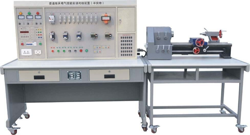 本裝置由電源控制部分、機(jī)床電氣控制部分、半仿真機(jī)床實(shí)物部分構(gòu)成。電源控制部分包括實(shí)訓(xùn)定時(shí)、定時(shí)報(bào)警、安全用電自動(dòng)控制等,機(jī)床電氣控制部分把整臺(tái)機(jī)床內(nèi)部電器裝在正面面板上,能直觀地觀察機(jī)床工作時(shí)各電器的動(dòng)作狀況。故障點(diǎn)在面板上設(shè)有相應(yīng)測(cè)試點(diǎn),供實(shí)訓(xùn)考核者測(cè)試用。仿真機(jī)床部分能模擬機(jī)床各種運(yùn)動(dòng)。通過本裝置的實(shí)訓(xùn)能使學(xué)員掌握機(jī)床常見故障的現(xiàn)象、故障產(chǎn)生的大概部位,熟練掌握機(jī)床電路工作原理,其是維修電工初、中、高級(jí)技能鑒定的理想設(shè)備。