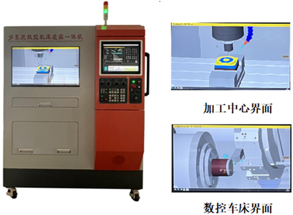 為了解決以上因素我公司研發(fā)了新一代多系統(tǒng)數(shù)控機(jī)床虛實(shí)一體訓(xùn)練機(jī),該設(shè)備軟件與硬件相結(jié)合,具有編程、加工和調(diào)試系統(tǒng)的功能,可以實(shí)現(xiàn)數(shù)控車床、數(shù)控加工中心的仿真操作,可手動編程或輸入CAD/CAM程序進(jìn)行模擬加工。高度仿真的軟件數(shù)控系統(tǒng)界面與真實(shí)的數(shù)控系統(tǒng)相同,配備真實(shí)的操作面板與手輪,讓學(xué)生在學(xué)習(xí)過程中能體會到真實(shí)數(shù)控機(jī)床一致的操作體驗(yàn),為下一步操作真實(shí)機(jī)床打好基礎(chǔ)而特別設(shè)計。