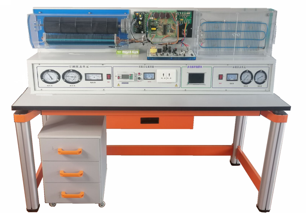 2.該裝置采用模塊化設(shè)計(jì),電氣控制與制冷系統(tǒng)獨(dú)立分開,并且電氣部分設(shè)置檢測點(diǎn),測測端子以及各路的輸出連接端子,可供學(xué)生進(jìn)行獨(dú)立接線、測試、遠(yuǎn)行等操作。