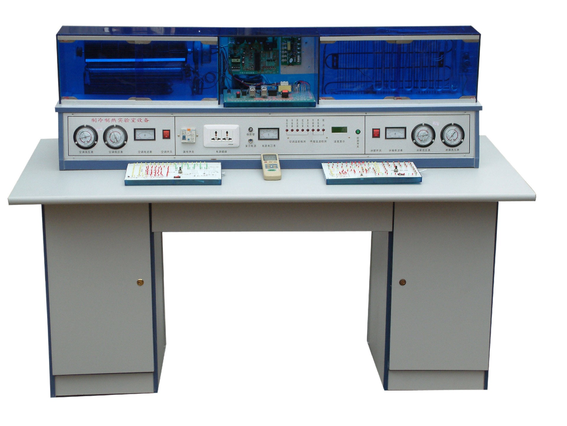 19.將空調(diào)器、電冰箱、全方位解剖,同時(shí)還保證單獨(dú)進(jìn)行空調(diào)的制冷制熱、模式運(yùn)轉(zhuǎn)及電冰箱制冷運(yùn)行等實(shí)驗(yàn),使學(xué)生掌握冰箱、空調(diào)器的運(yùn)行原理,使用方法,故障原因及排除方法。