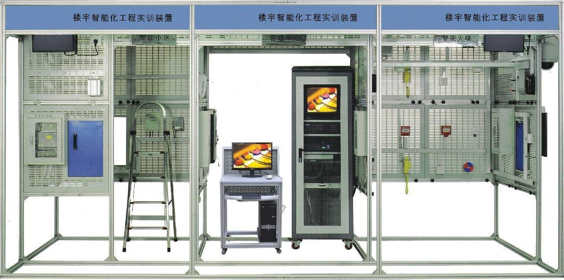 該系統(tǒng)在結構上以智能建筑模型為基礎,包含了智能大樓、智能小區(qū)、管理中心和樓道等典型結構,涵蓋了對講門禁、安防、視頻監(jiān)控、消防、綜合布線、遠程抄表、和DDC監(jiān)控照明7個系統(tǒng),各系統(tǒng)既可獨立運行,也可實現(xiàn)聯(lián)動。通過此系統(tǒng)進行項目訓練,檢驗學生的團隊協(xié)作能力、計劃組織能力、樓宇設備安裝與調(diào)試能力、工程實施能力、職業(yè)素養(yǎng)和交流溝通能力等。本裝置為2011年全國職業(yè)院校技能大賽高職組“樓宇智能化系統(tǒng)安裝與調(diào)試”賽項唯一指定競賽設備。