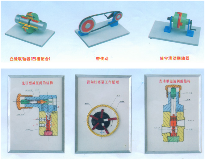機(jī)械基礎(chǔ)教學(xué)模型與示教板是大中專院校、職技校教學(xué)示教、測(cè)繪、實(shí)習(xí)用,以教材中原件實(shí)物圖表做成模型,可拆組合(并有裝配組件)、采用硬質(zhì)塑料,用高級(jí)油漆噴涂制作,外形美觀。剖切鮮明、不易變形,投影箱用有機(jī)玻璃、五夾板制作,可展組合。