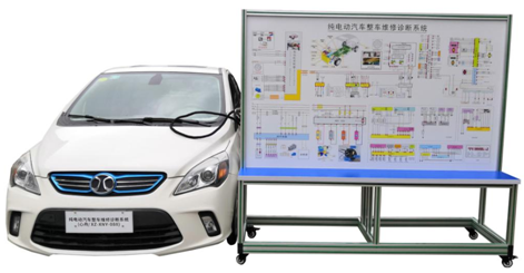 該設備將一臺可正常運行的北汽EV160電動車改裝為在線檢測教具車,可實時檢測與診斷電機控制單元、VCU控制單元、高壓電池ECU控制單元、車載充電系統(tǒng)單元與ABS及空調(diào)控制單元等的動、靜態(tài)信號參數(shù)。適用于各院校對電動車整車理論和維修實訓的教學需要。