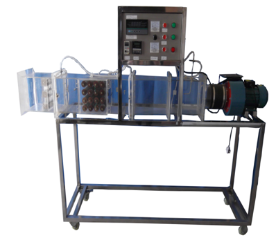 多翼式低噪音風機,自動調節(jié)風門,組合式有機玻璃風洞,翅片加熱管,加熱由固體調壓模塊配電位器調節(jié)加熱功率,數顯電流表、電壓表,翅片管簇順排和叉排組合,溫度傳感器,畢托管配差壓傳感器測量風量,16路萬能信號輸入巡檢儀顯示溫度、阻力、流量,不銹鋼支架。