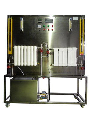 不同形式合金散熱器,不銹鋼電加熱水箱,流量調(diào)節(jié)閥門(mén)組,轉(zhuǎn)子流量計(jì),循環(huán)熱水泵,水溫控制儀表,U型壓力計(jì),8路萬(wàn)能信號(hào)變送輸出巡檢儀。
