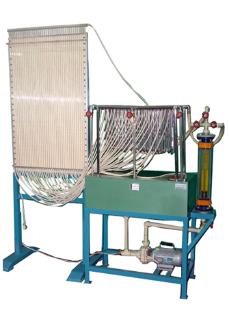 防腐水泵,PVC水箱,水位計,分配聯(lián)箱、匯集聯(lián)箱,蛇形管,40根測壓管,40根玻璃差壓板,可調節(jié)閥門組,不銹鋼支架等。