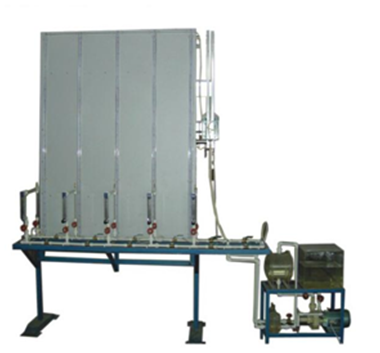 下半部由管道、閥門、流量計、穩(wěn)壓罐、鍋爐、水泵組成,用來模擬由5個用戶組成的熱水網(wǎng)路。上半部有高位水箱和安裝在一塊垂直木版上的12根玻璃管,玻璃管的頂端與大氣相通,玻璃管下端用膠管與網(wǎng)路分支點相接,用來測量熱網(wǎng)用戶連接點處的供水干管與回水干管的測壓管水頭(水壓曲線高度)。每組用戶的兩支玻璃管間附有標尺以便直觀的讀出各點壓力。