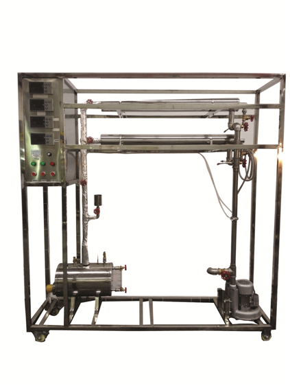 主要設(shè)備 | 普通傳熱管:內(nèi)管內(nèi)徑d=18mm,內(nèi)管外徑De=20mm(紫銅管)。 外管內(nèi)徑d=52mm,外管外徑De=57mm(304不銹鋼管),管長1200mm。 強化傳熱管:內(nèi)管內(nèi)徑d=18mm,內(nèi)管外徑De=20mm(紫銅管,內(nèi)附螺旋線圈)。 外管內(nèi)徑d=52mm,外管外徑De=57mm(304不銹鋼管)管長1200mm。 加熱釜:304不銹鋼,加熱功率3.0KW。配帶安全閥。 孔板流量計,孔板喉徑:Φ25mm,風(fēng)壓傳感器0~10KPa。 宇電AI704M多路數(shù)字溫度顯示儀。 宇電AI702M多路數(shù)字溫度顯示儀。 宇電AI501壓差數(shù)字顯示儀。 宇電AI518溫度控制儀(帶手動功能)。 K型熱電偶溫度傳感器7支。 鼓風(fēng)機:旋渦氣泵,功率 550W,最大流量70m3/h。 電器:接觸器、開關(guān)、漏電保護空氣開關(guān)。 304不銹鋼管路、管件及閥門。 304不銹鋼儀表柜:測控、電器設(shè)備在實驗架上。 304不銹鋼材質(zhì)框架1800*500*1800mm(長×寬×高), 帶腳輪及禁錮腳。 | |||