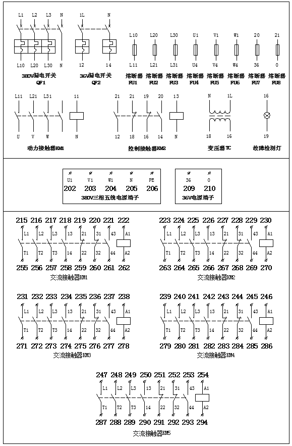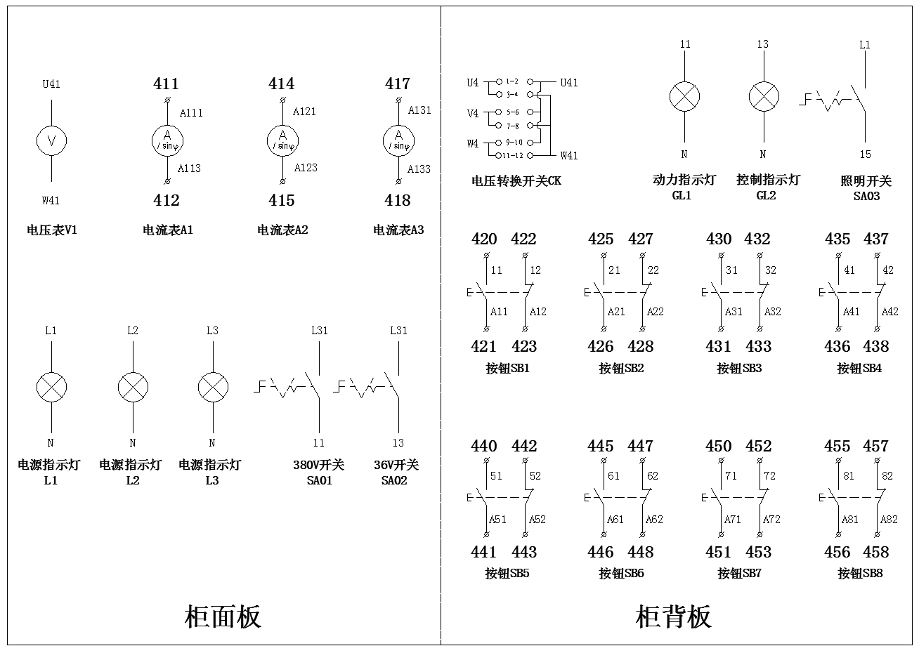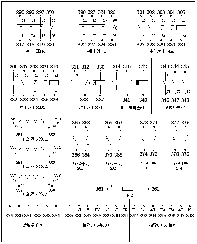 3、設(shè)備配置:本設(shè)備按標(biāo)準(zhǔn)電氣控制柜設(shè)計(jì)制作,安裝有完成各種電氣控制所需要的多種低壓電器,如:漏電斷路器、電壓表、電流表、按鈕、信號(hào)燈、熔斷器、報(bào)警裝置、電流互感器、接觸器、時(shí)間繼電器、中間繼電器、熱繼電器、行程開(kāi)關(guān)、轉(zhuǎn)換開(kāi)關(guān)、整流二極管、電動(dòng)機(jī)等。內(nèi)含:三相電源開(kāi)關(guān)(單、三相斷路器各1只)、熔斷器5只、交流接觸器3只;電動(dòng)機(jī)1只、電流互感器3只、熱繼電器2只、中間繼電器2只、時(shí)間繼電器2只、行程開(kāi)關(guān)4只、接線端子若干。