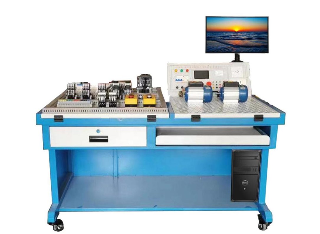 設(shè)備由實(shí)訓(xùn)屏(內(nèi)置電源)、實(shí)訓(xùn)桌(含鍵盤)、儲(chǔ)物柜三大部分組成。鋼制表面經(jīng)高溫噴塑處理,美觀大方且有效起到防銹絕緣的作用;電源箱的布局依次為電源保護(hù)裝置、電源指示裝置、電源輸出;實(shí)訓(xùn)桌左側(cè)安裝有角度可以調(diào)節(jié)的嵌入式的考核平臺(tái)1張,所有元器件均采用端子引出,學(xué)生接線只需在端子上進(jìn)行接線,可以有效的保護(hù)元器件,轉(zhuǎn)接端子采用接插兩用端子排,方便與元器件和實(shí)訓(xùn)電源屏的連接,右側(cè)裝有網(wǎng)孔板一塊,角度可調(diào)嵌入式安裝;實(shí)驗(yàn)桌底部裝有至少4個(gè)導(dǎo)向輪,方便設(shè)備移動(dòng);儲(chǔ)物柜采用標(biāo)準(zhǔn)結(jié)構(gòu)和抽屜式,用于存放工具以及實(shí)訓(xùn)資料。電腦通過可調(diào)節(jié)電腦支架安裝于電源屏的上方。