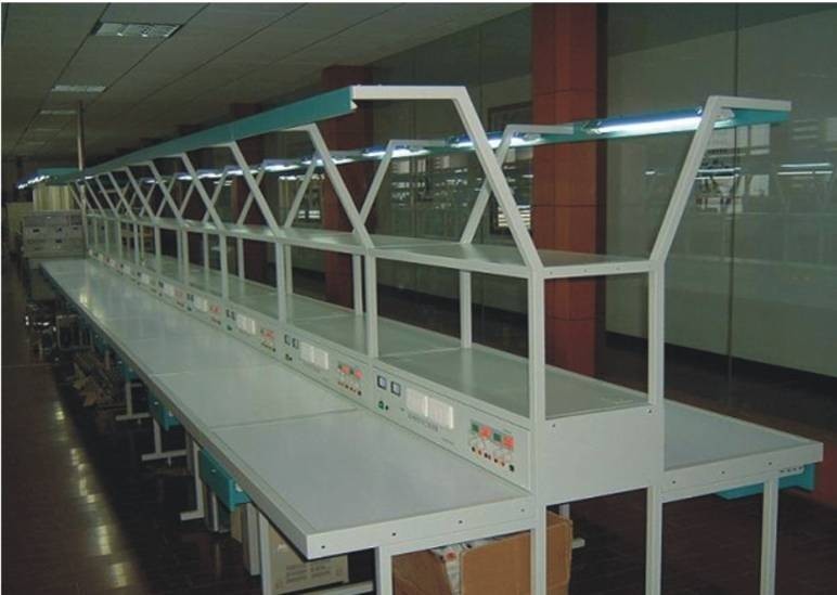 實(shí)訓(xùn)臺上提供日光燈(用于照明)2個,透明的PVC板4個,可夾放原理圖等資料,另外還配備三芯雙聯(lián)暗插座4個、兩芯暗插座2個、工具柜2個,工作臺面設(shè)有綠色防靜電桌墊,整個裝配線安全可靠。