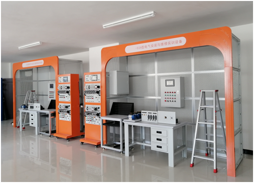 裝置包含工業(yè)電氣設(shè)備安裝架、電源配電箱、照明套件、電氣控制箱、電機(jī)及驅(qū)動(dòng)裝置、指令與指示元件、 PLC、變頻器、觸摸屏、線路器材、電工工具、工具移動(dòng)車、工具柜等。采用開放式、模塊化、多樣化、 標(biāo)準(zhǔn)化設(shè)計(jì)。通過電氣系統(tǒng)的設(shè)計(jì)、布局安裝、接線、程序設(shè)計(jì)、調(diào)試、運(yùn)行、故障維修等操作,使學(xué)生 掌握電氣設(shè)備安裝、調(diào)試運(yùn)行、維護(hù)等綜合能力。